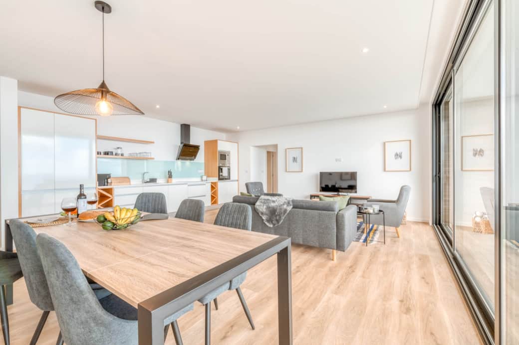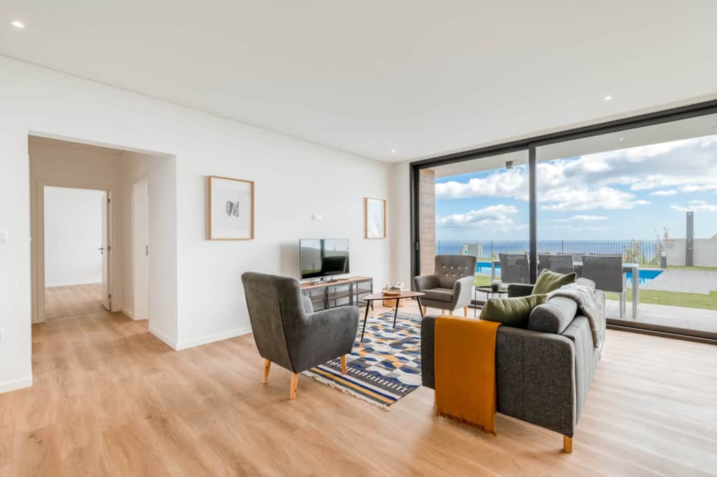 De open keuken, eet- en woonkamer komen uit op de patio bij het zwembad, met een eettafel en stoelen om van het prachtige uitzicht op de oceaan te genieten. De keuken is goed uitgerust met een inductiekookplaat, kleine apparaten en een aparte bijkeuken met vaatwasser. Een smart-tv met tv-kanalen en wifi maken de inrichting van de woonkamer compleet. De unit heeft een groot terras en directe toegang tot de tuin en het gedeelde zwembad en zonnedek.